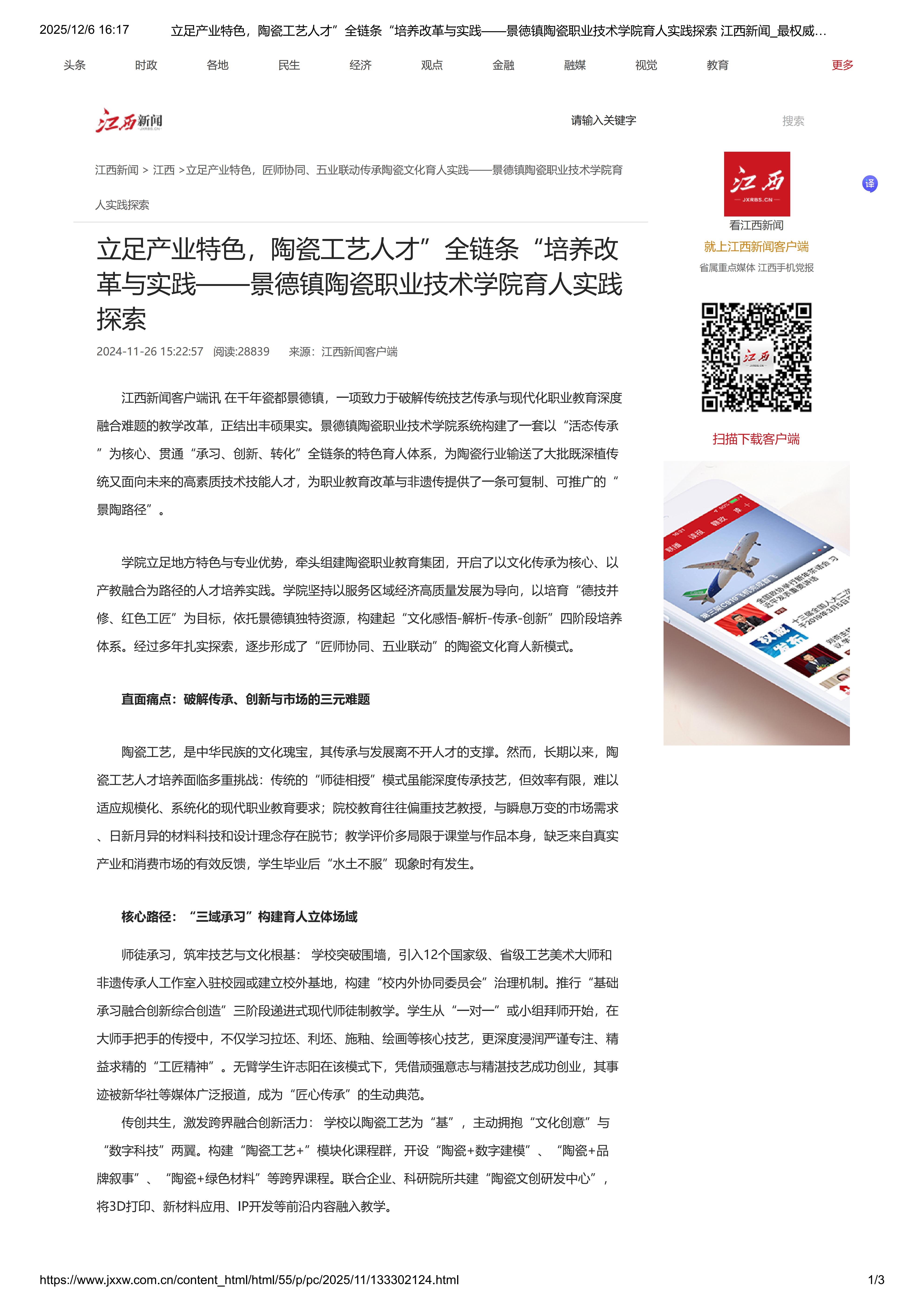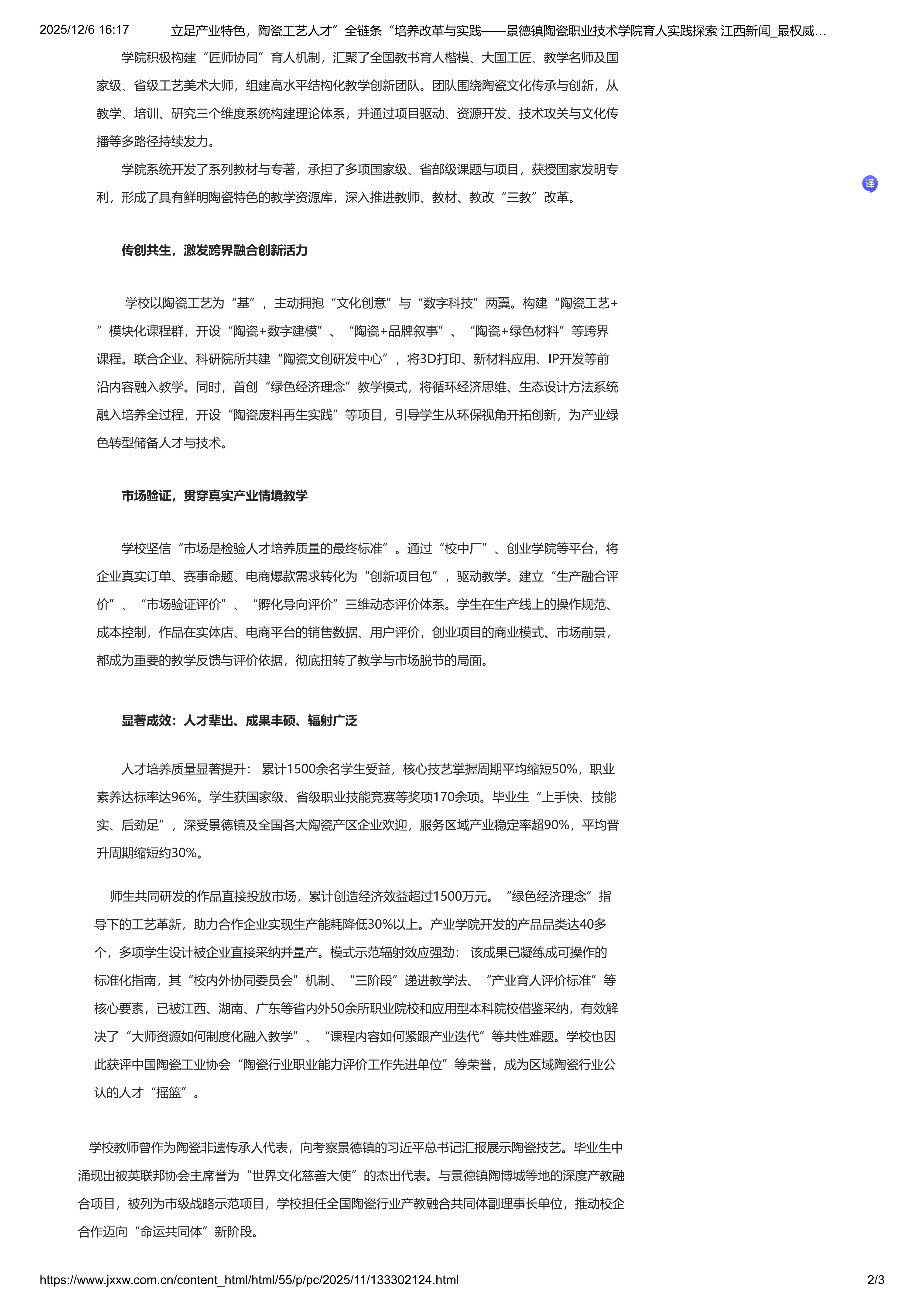 上一条:创新育人模式,激活千年瓷魂——景德镇陶瓷职业技术学院“活态传承”成果引领职业教育新路径