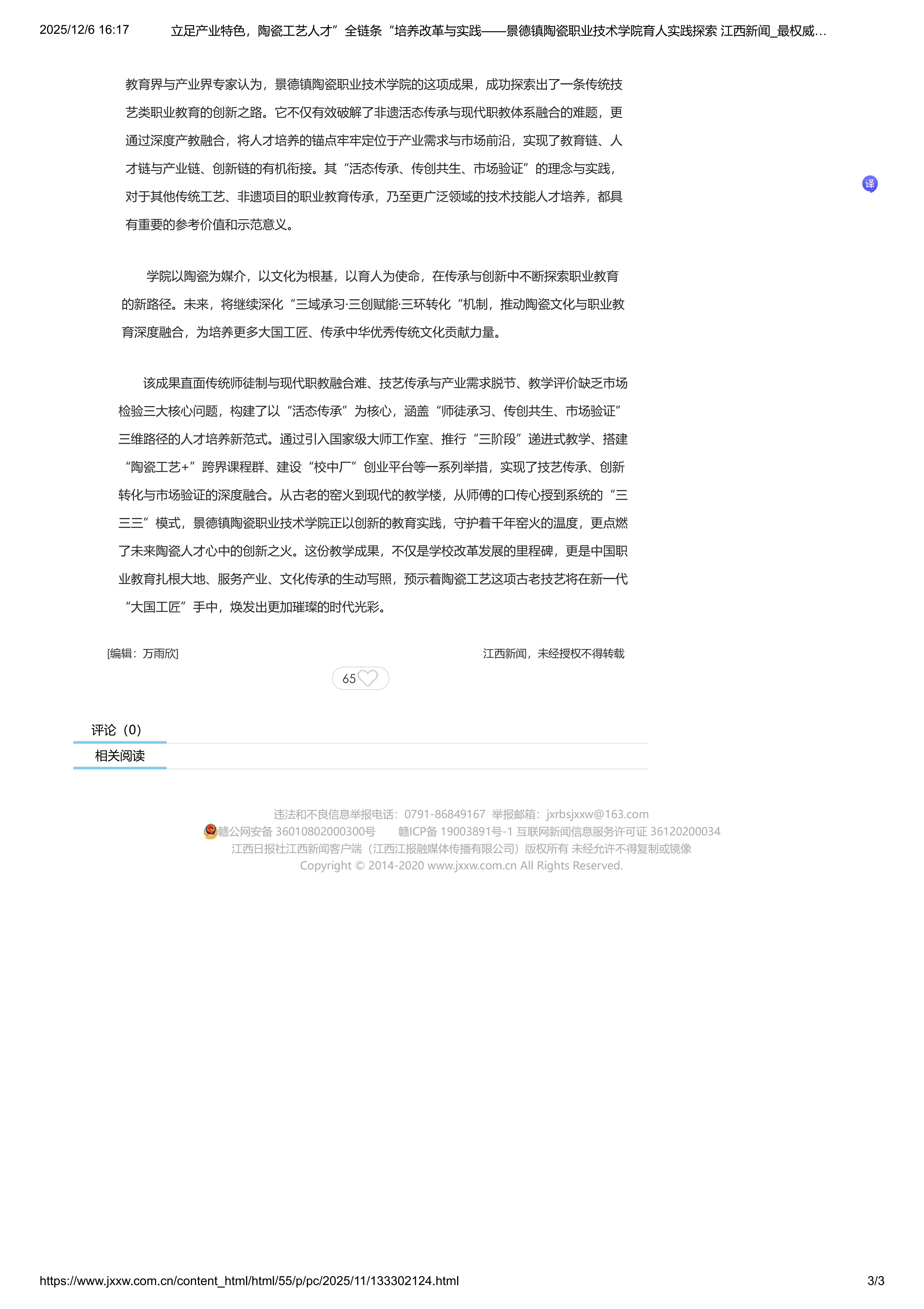 下一条:三域承习育匠才 三创赋能兴瓷业——江西新闻网-大江网